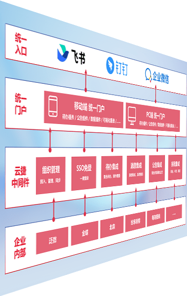 对协作平台提供支持服务,,,,支持企业应用与协作平台对接,,,包含组织同步、、、消息集成、、待办集成等。。支持目前主流的协作平台:钉钉、、、企微和飞书。。